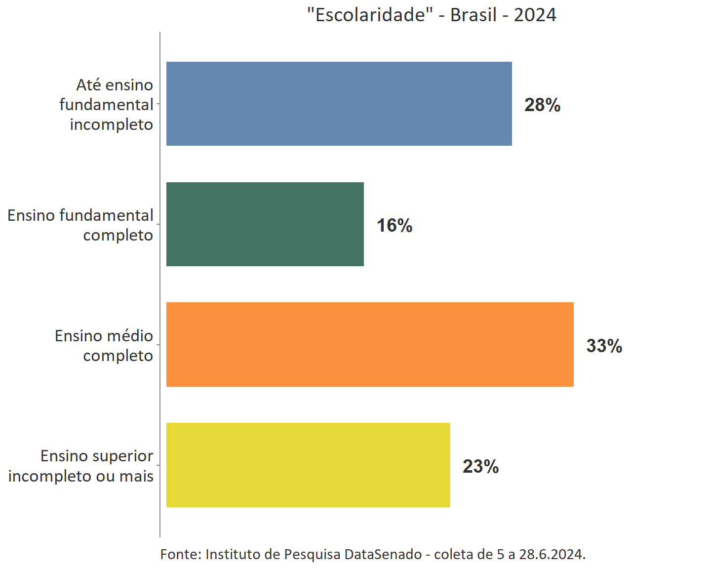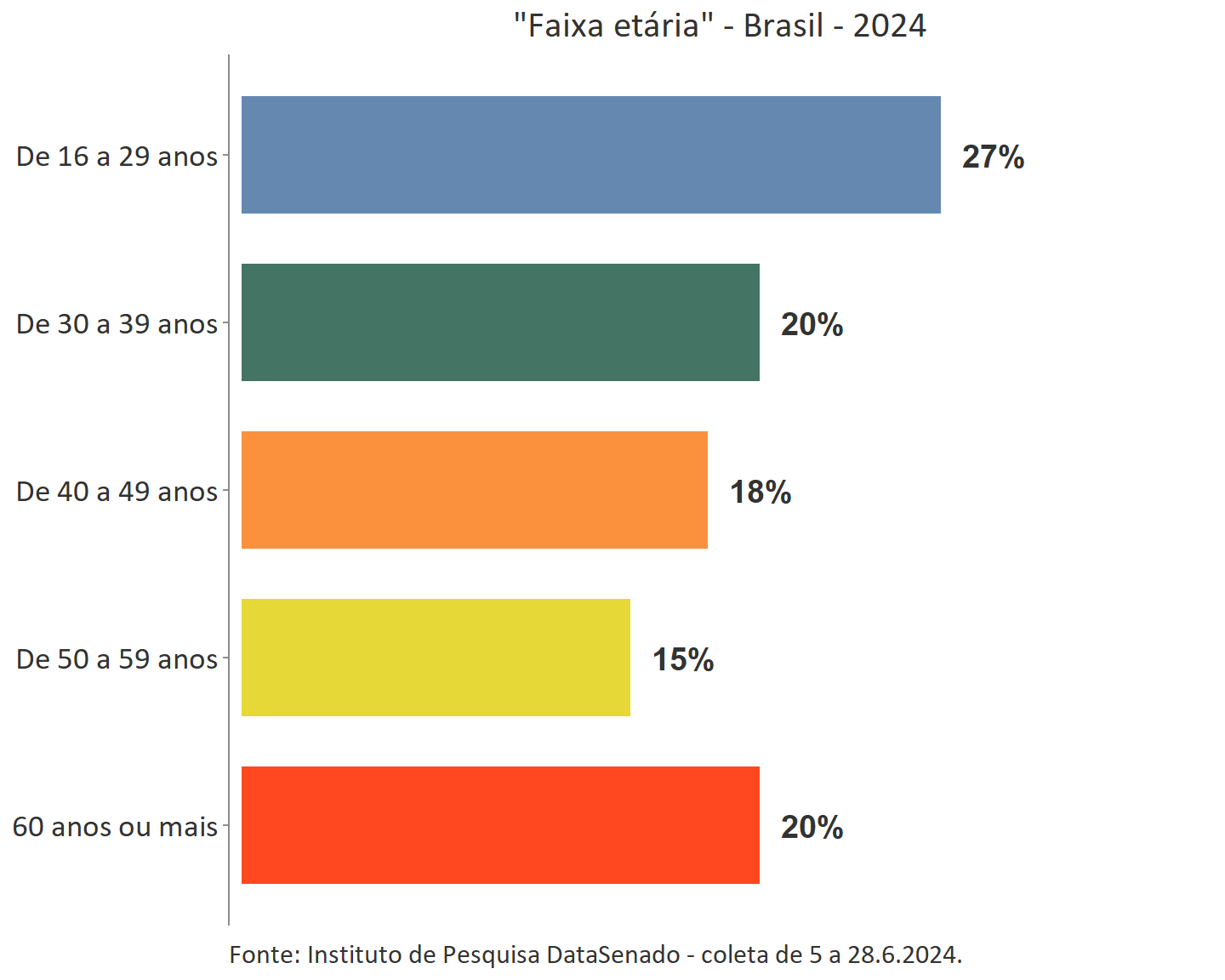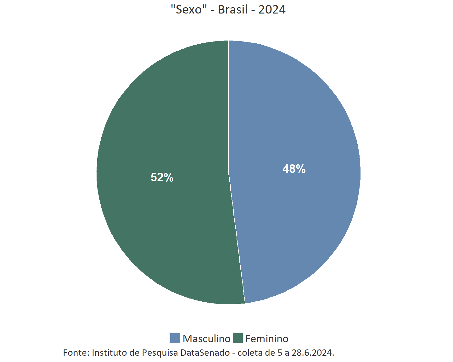 As amostras do DataSenado são proporcionais e representativas da população brasileira. Desta forma, para esta pesquisa, este é o perfil da população brasileira com 16 anos ou mais: