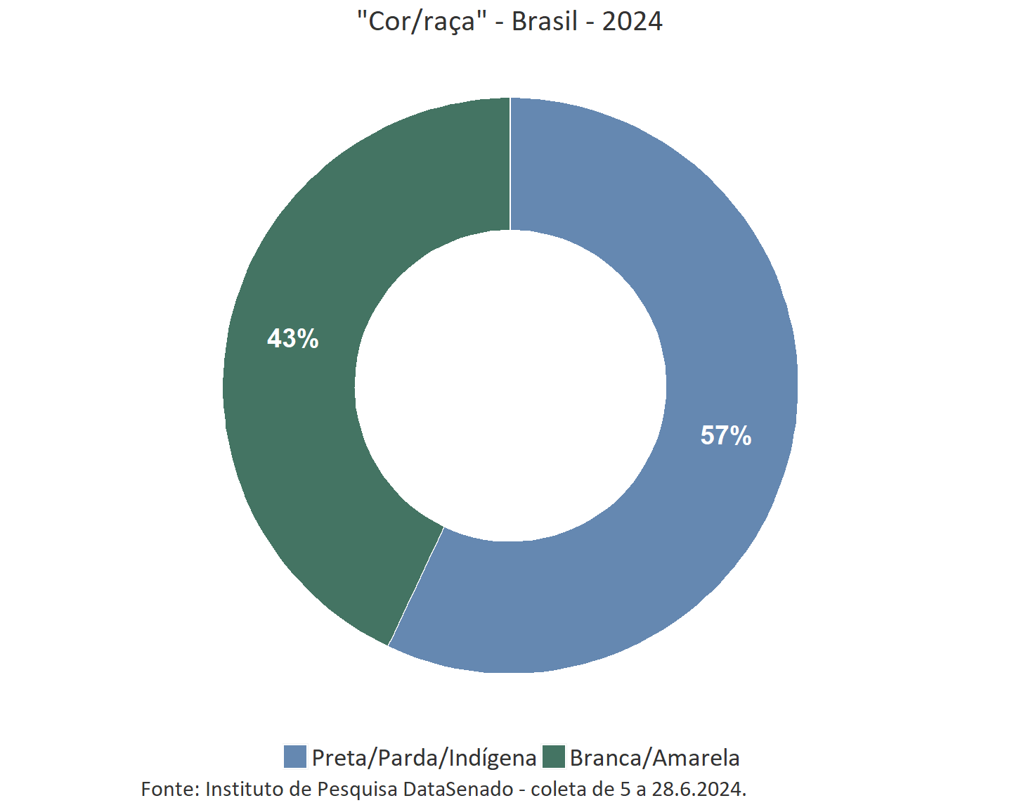 - para as informações de sexo, raça/cor, idade, situação do domicílio, condição de ocupação e escolaridade: a distribuição da população brasileira de pessoas com 16 anos ou mais, segundo os dados da Pesquisa Nacional por Amostra de Domicílios Contínua (PNAD Contínua) do 1º semestre de 2024;