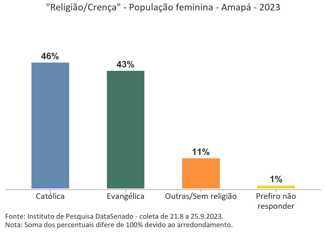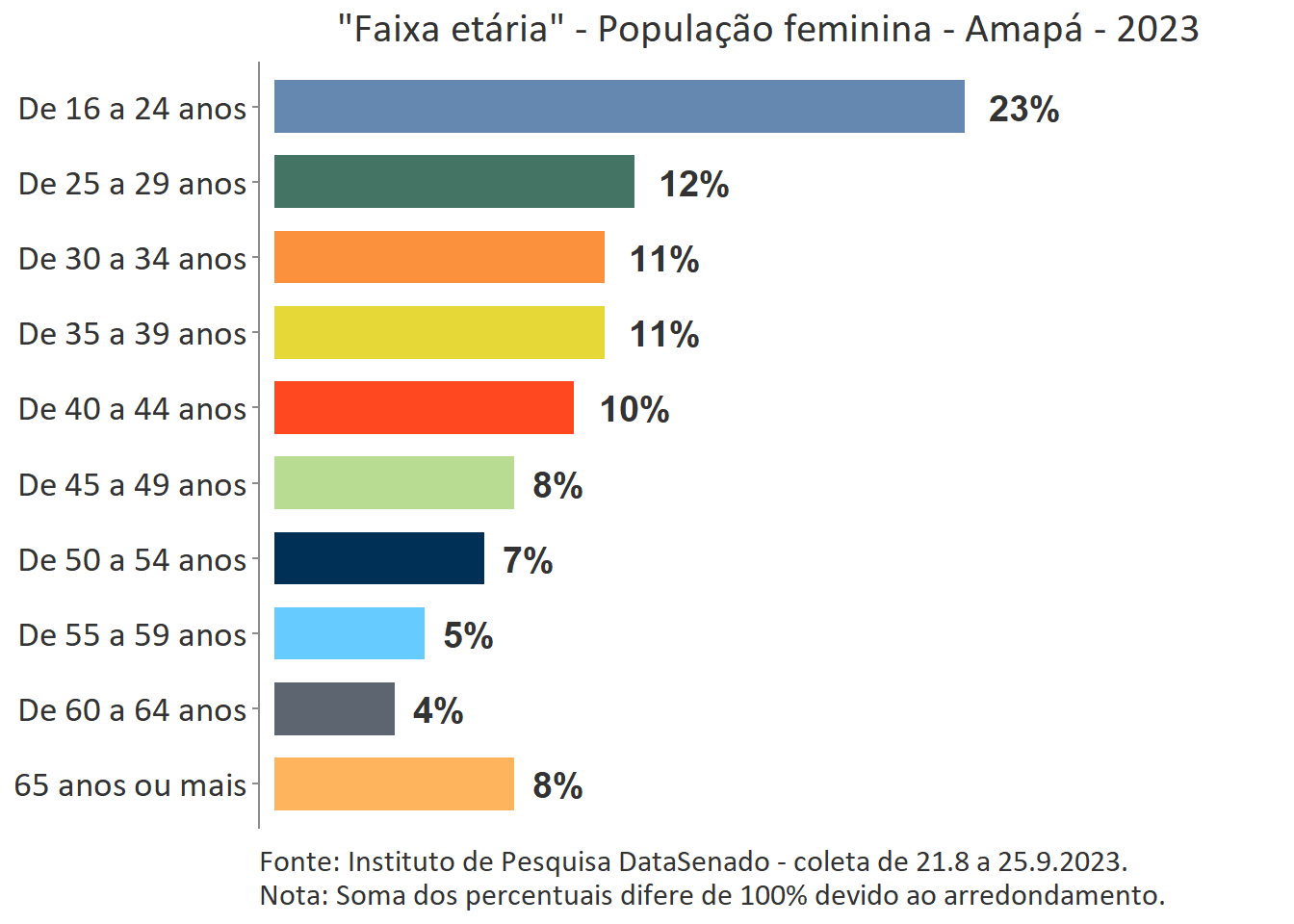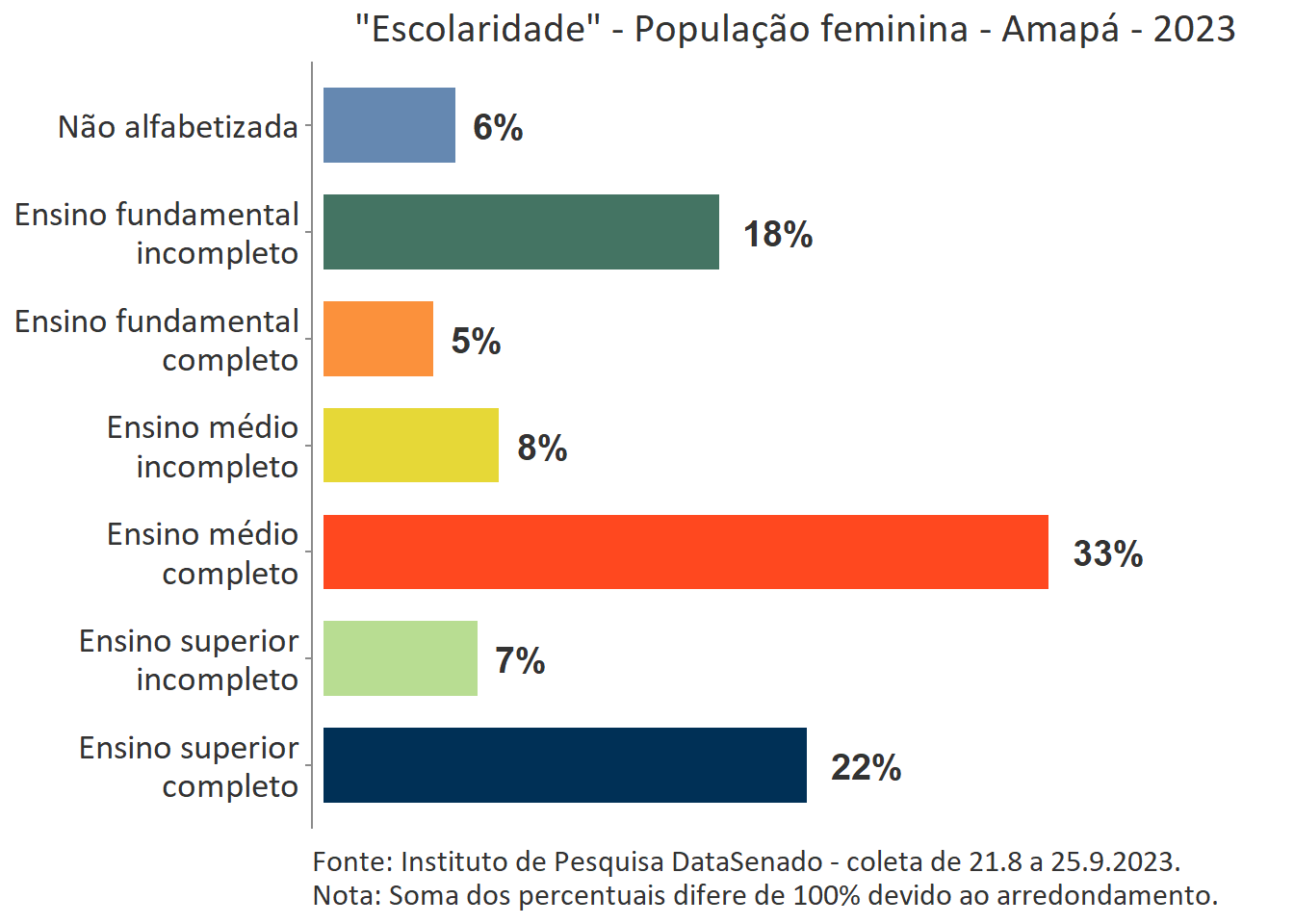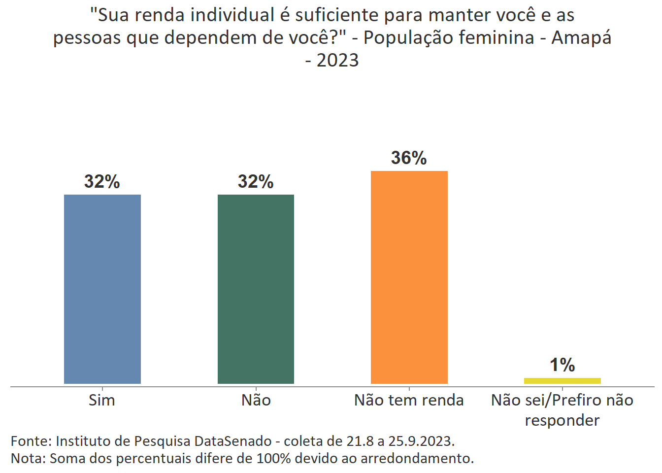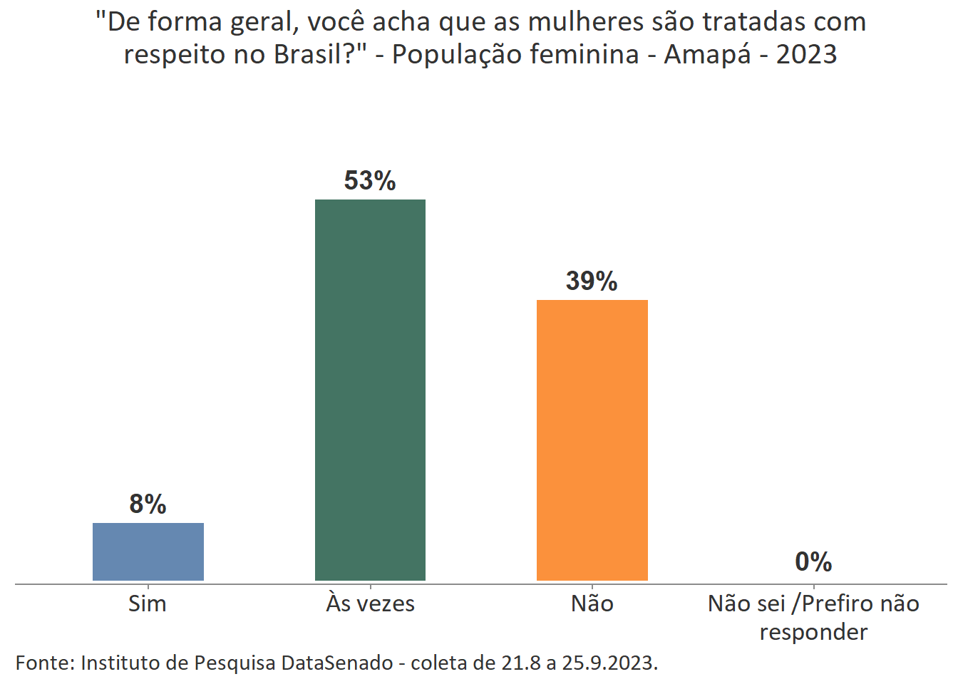Pesquisa nacional realizada em 2023 pelo Instituto de Pesquisa DataSenado mostra que 53% das cidadãs do Amapá consideram que as mulheres às vezes são tratadas com respeito no Brasil.