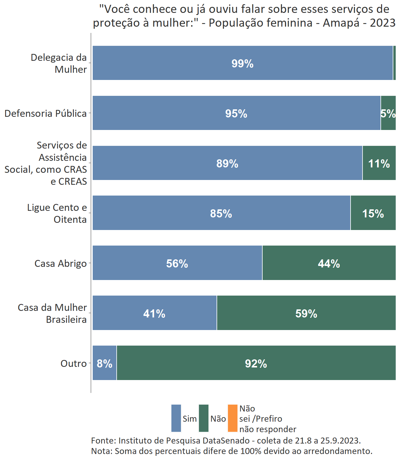 Entre as cidadãs amapaenses, o serviço de proteção mais conhecido são os prestados pela delegacia da Mulher, conhecidos por 99% delas.