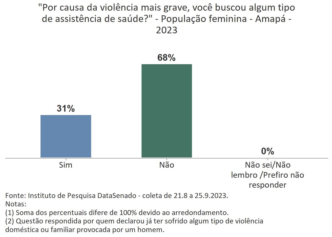 Entre as mulheres agredidas do Amapá, 31% buscaram algum tipo de assistência à saúde e 82% afirmam não conviver mais com a pessoa que as agrediu.