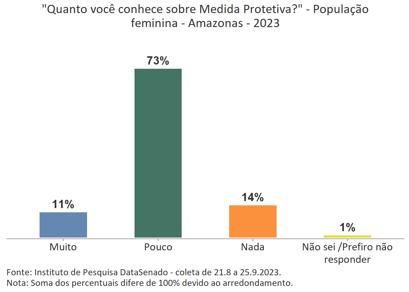 De acordo com a pesquisa, 73% das mulheres do Amazonas afirmam conhecer pouco sobre Medida Protetiva.