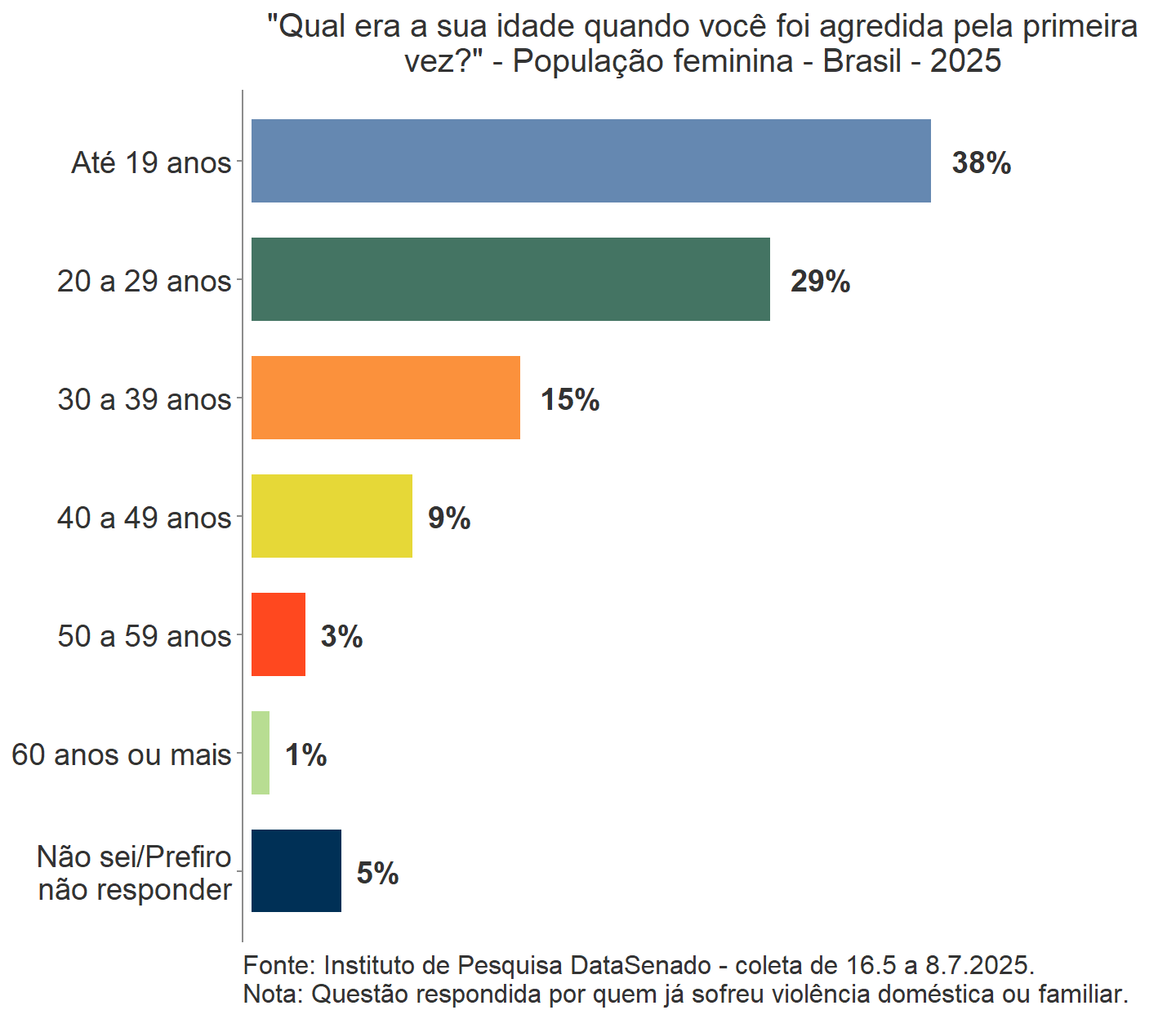 Seguindo essa linha, a edição de 2025 entrevistou 21.641 mulheres de 16 anos ou mais em todo o território nacional, no período de 16/5 a 8/7/2025. Nessa oportunidade, a pesquisa aprofundou a investigação sobre a violência declarada, incluindo perguntas sobre a existência de testemunhas, ajuda de adultos, tempo de recorrência da violência e agressões digitais, além da inclusão de informações sobre mulheres com deficiência. Também participaram 107 mulheres trans, respondendo a questionário específico sobre suas vivências.
